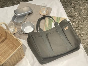 「ヘビーキャンバスツールトートS」では、内、外にポケットがついているので荷物が多くなるピクニックや子育て中のママさん、日帰り旅行にもピッタリ。