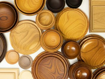 1996年に「めいぼく椀」を誕生させてからは木材の取り扱い数も6種類(サクラ、ケヤキ、ブナ、クリ、クルミ、ナラ)に増えましたが、今でも原木の加工から塗装までを一貫生産し、「愉しい食卓をもっと愉しく」をモットーに、オリジナリティあふれるアイテムを数多く生み出しています。