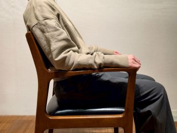 また、一般的なアームチェアと比較しても高めに設計されたアームは、座った状態で腕を置いた際に、その人の体格に左右されず肩や背中への負荷を軽減します。更に、このアーム高は立ち座りの支えとしても機能性を高めています。