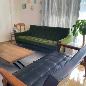 もともと部屋にカリモクのソファが欲しいと思っていたこともありますが、西宮が地元である私にとって馴染みのあるマルーン色に惹かれました。 それに付け加え、ブランドプレートも西宮店とのダブルプレートで、その証が他には無いプレミア感があります。