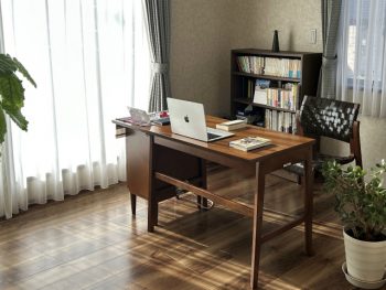 しかし、日常使いとして使用するのは現実的ではなく、モダンな家具だと疲れてしまうと思っていたところ、カリモク60のデスクを見つけました。